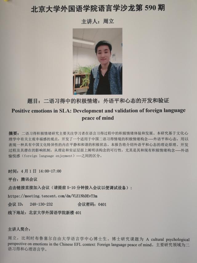 开云官方网址语言学沙龙第590期 二语习得中的积极情绪:外语平和心态的开发和验证