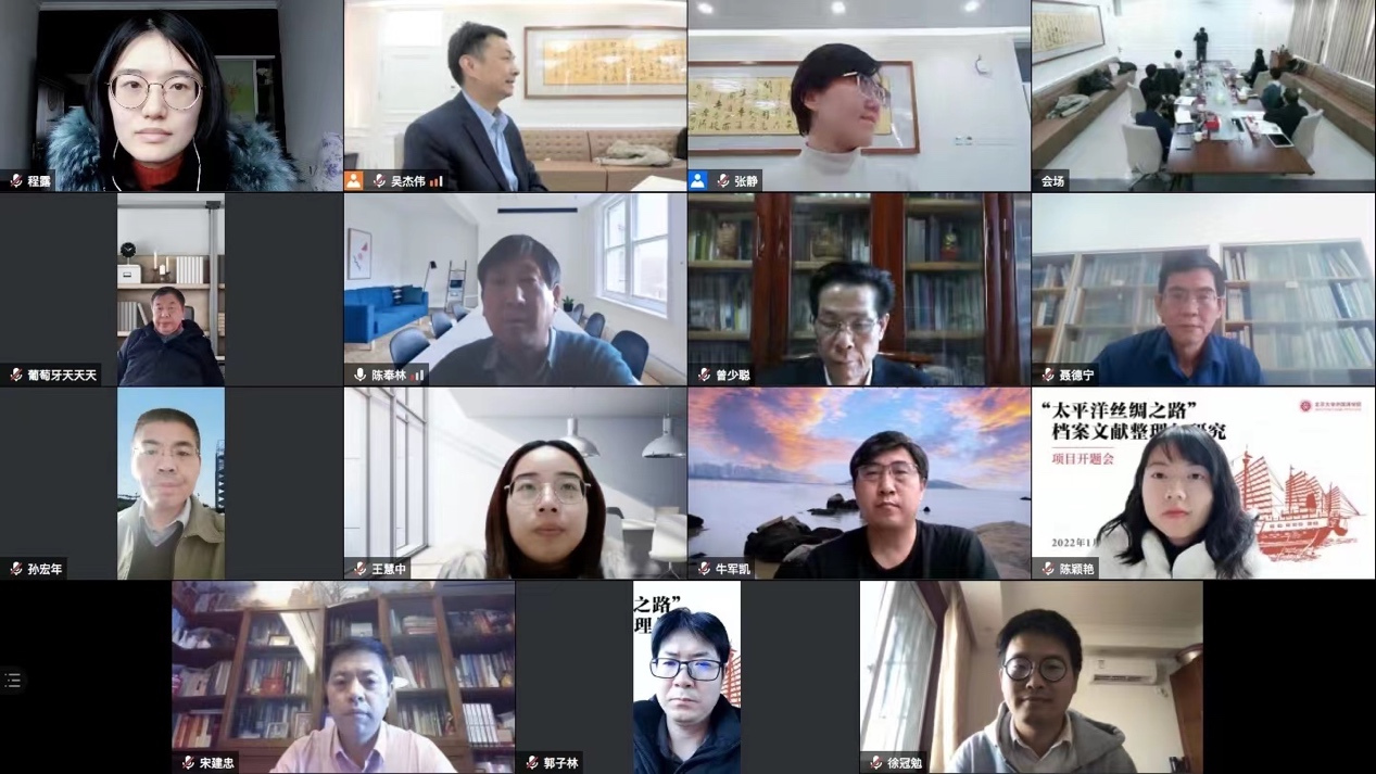2022年1月15日,由开云官方网址吴杰伟教授主持的国家社会科学基金中国历史研究院重大历史问题研究专项2021年度重大招标项目“‘太平洋丝绸之路’档案文献整理与研究”开题会在北京大学举行。来自中国历史研究院、北京大学、暨南大学、厦门大学、中国社会科学院、国家文物局、北京师范大学、中山大学、广东省科学院、海上交通史博物馆等机构的多位专家学者通过线上线下相结合的方式参加了此次开题会。