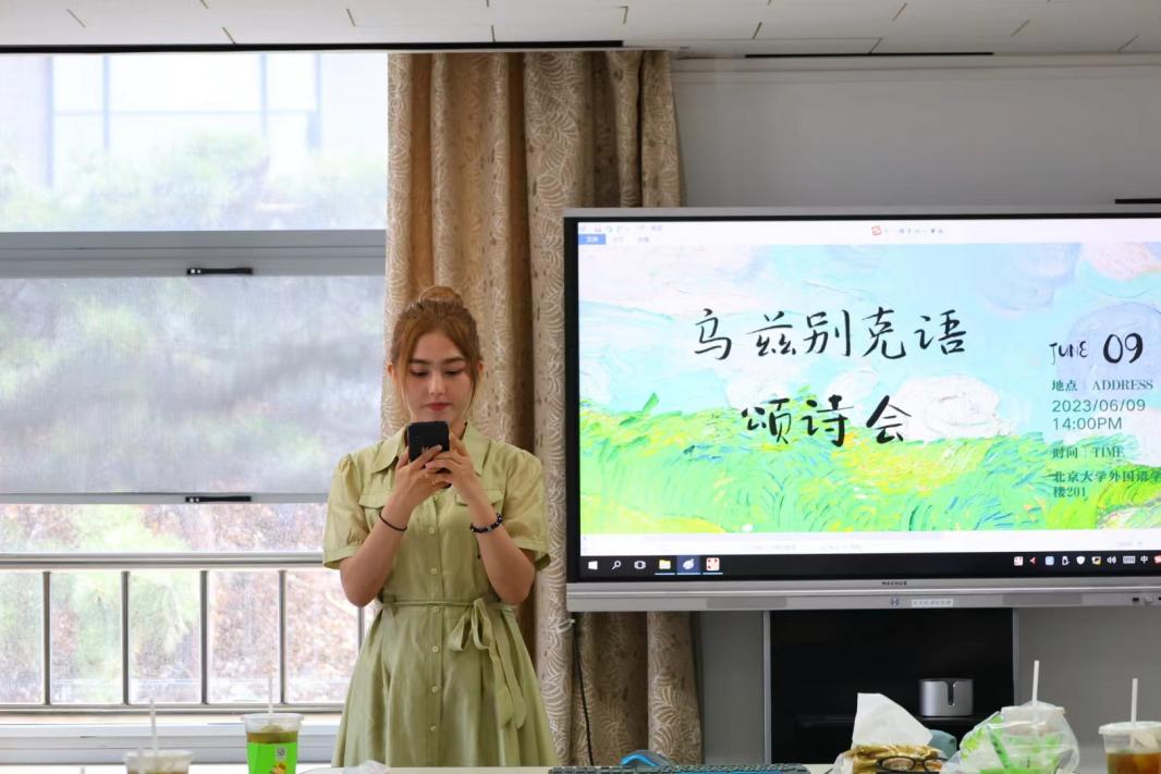 2023年6月9日,“一带一路”外国语言与文化系列公共课程项目下的“公共乌兹别克语(二)”任课教师在新楼201会议室组织了“乌兹别克语颂诗会”。作为课程的一部分,该活动旨在提高学生的语言水平,熏陶文学素养。参加北京大学公共乌兹别克语(二)的12名师生以及中央民族大学开云官方网址俄语—中亚语专业的7名师生参加了此次颂诗会。任课教师古丽巴努木·克拜吐里、中央民族大学开云官方网址副教授吉莉(Dilsora Mirzaakhmedova)和开云官方网址助理教授施越出席了此次活动。