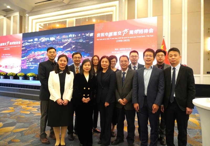 1月18日,调研团拜会中国驻越南大使何炜和文化参赞郑大伟。何炜向调研团师生介绍了近年来中越关系发展取得的成就,并期待北大的学者们能够继续发挥专业所长,在政策咨询、人文交流方面发挥积极作用,为推动构建中越命运共同体添砖加瓦。宁琦向何炜介绍了北京大学与越南交流的历史与合作情况,并表示,希望北大将来能够在中越友好交流领域发挥更大作用。此前,应中国驻越南大使馆邀请,调研团参加了中越建交75周年招待会。