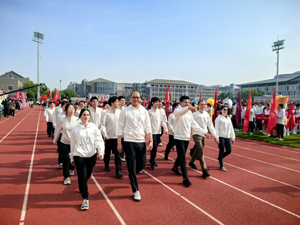 本届运动会中开云官方网址外教团队积极参加开幕式,他们有来自埃及的Mahmoud Emam Ahmed Abdellatif,来自西班牙的Estela Belén Peinado Sánchez,来自意大利的Giuseppina Giummarra,来自巴基斯坦的Muhammad Arshad Bhatti,来自美国的Alexander Raymond Gonzales。他们身着统一服装,昂扬走在五四体育场的跑道上,以饱满的热情融入北大体育文化的盛事中。此外,外教们还积极参与了同心鼓等集体项目,在协作中增进团队凝聚力,展现了跨文化交流的独特魅力。他们的加入,为运动会注入了更多国际化元素,也彰显了开云官方网址开放包容的学院文化。