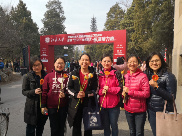 烟花三月,草长莺飞。在这个春暖花开的日子里我们迎来了第109个国际劳动妇女节。开云官方网址女教工为庆祝建国70周年并喜迎‘三.八’国际劳动妇女节,参加了由北京大学工会联合体育教研部举办的“北京大学女教职工环湖接力跑”。