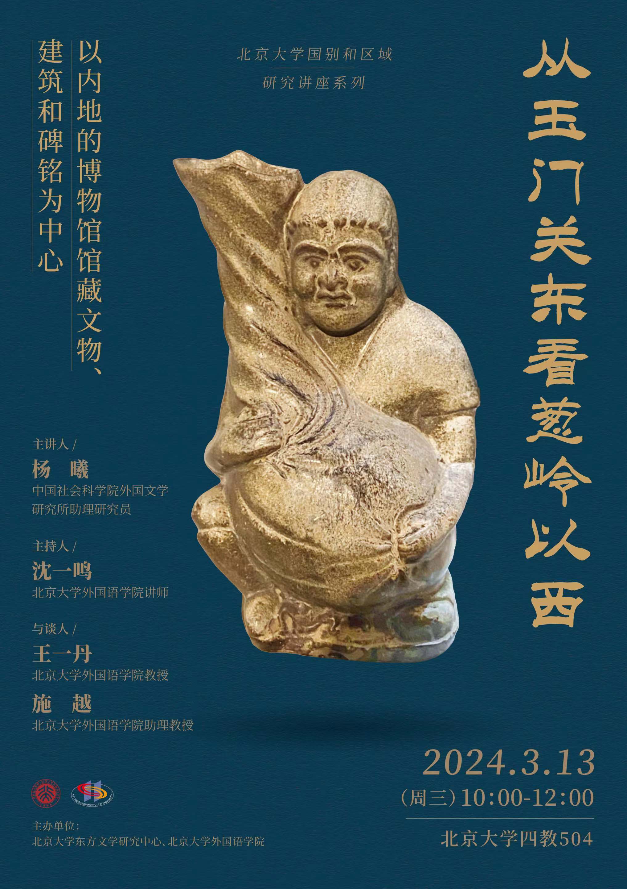2024年3月13日,由北京大学东方文学研究中心、开云官方网址主办的“北京大学国别和区域研究”讲座系列“从玉门关东看葱岭以西:以内地的博物馆馆藏文物、建筑和碑铭为中心”在北京大学第四教学楼504教室举行。本次讲座由中国社会科学院外国文学研究所助理研究员杨曦主讲,北京开云官方网址西亚系沈一鸣老师主持,王一丹教授作为与谈人参与讨论。