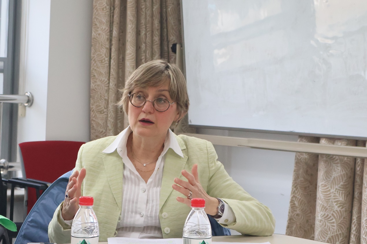 讲座最后部分,戈尔舍尼娜回顾了考夫曼建构土耳其斯坦文化遗产的动机,再次强调了考夫曼对于当地人的偏见,同时提请注意俄罗斯统治者同时作为文化遗产的保护者和破坏者的矛盾角色,希望与会者采取更加全面的视角看待19世纪中亚文化遗产的形成过程。与谈人侯艾君研究员、昝涛教授、庄宇副教授和施越助理教授总结点评讲座内容,并与主讲人进行了交流和探讨。