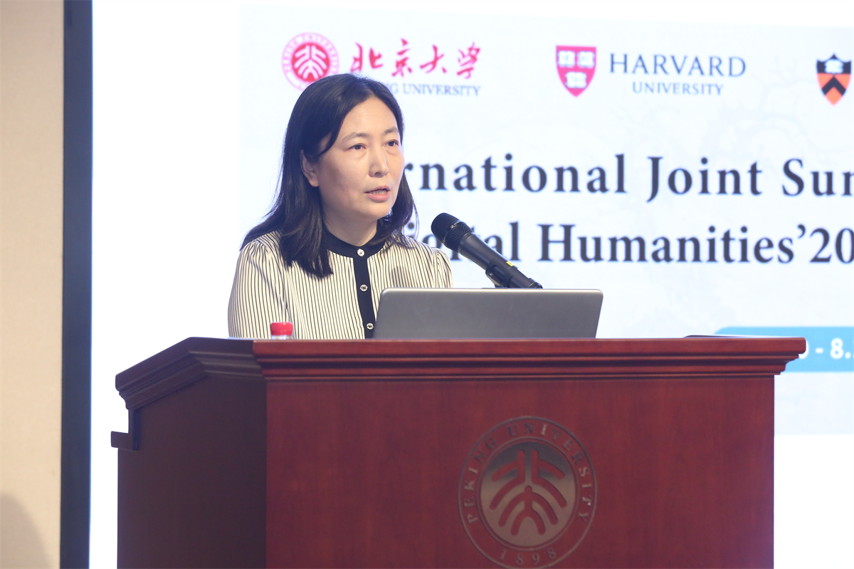 第一场报告发言人为北京大学教授王军和长聘副教授苏祺,发言主题为“从数字人文联合暑期工作坊看DH国际教育”。以2023年8月初在北京大学举办的北京大学、哈佛大学和普林斯顿大学三校联合工作坊“数字人文国际联合暑期工作坊’2023”为例,两位老师对智能时代的数字人文教育进行了深入探讨。该工作坊邀请人文学者和人工智能专家联合授课,教授如何在人文材料上应用大数据与智能方法,指导学员应用计算思维来解决历史与人文议题,通过对真实材料的精读研讨和具体项目的动手实践,培养学员独立的研究能力,增进跨学科合作。