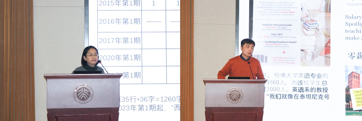 下午共四位老师进行主题发言,由北京大学英语系助理教授武伟主持。北京外国语大学外国文学研究所研究员/教授姜红的发言题目是“《外国文学》期刊与英语文学研究:2010年以来”。她通过对近十几年来英语文学相关论文情况的梳理,分析了英语文学研究的现状和趋势。与姜红老师的发言不谋而合相呼应的是,南京大学开云官方网址教授但汉松的发言题目是“如何重建一种公共的文学批评:以近年来美国英文系学科之争为例”。他指出,通过比较与借鉴国外学者的观点争鸣,我们或许可以更好地思考当代中国高校英文系作为一个学科的定位与未来的发展。