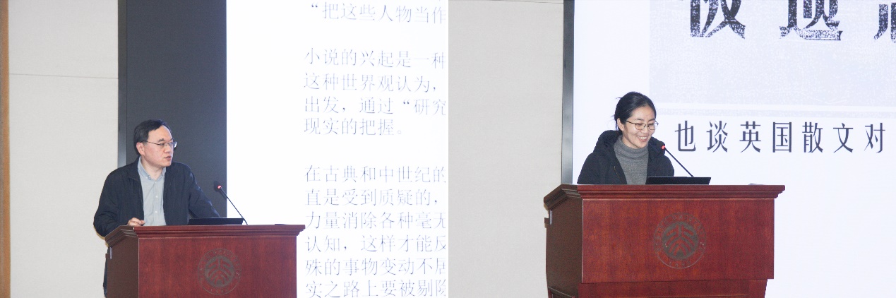 中国社会科学院外文所研究员陈雷的发言题目是“《坎特伯雷故事》‘总引’中的社会全景再现”。他以坎特伯雷故事总叙为例,为我们展示了其中个体性和社会性的统一;里面很多有关社会生活的指涉及隐喻,对我们理解和阐释文学都有重要作用。北京大学英语系副教授黄淳的发言题目是“被遗忘的编者:也谈英国散文对中国现代散文的影响”。黄老师指出,真正对中国新文学散文产生重大影响的,与其说是英国散文大传统,还不如说是20世纪初英国散文乃至文学批评的一段现代主义审美转向。