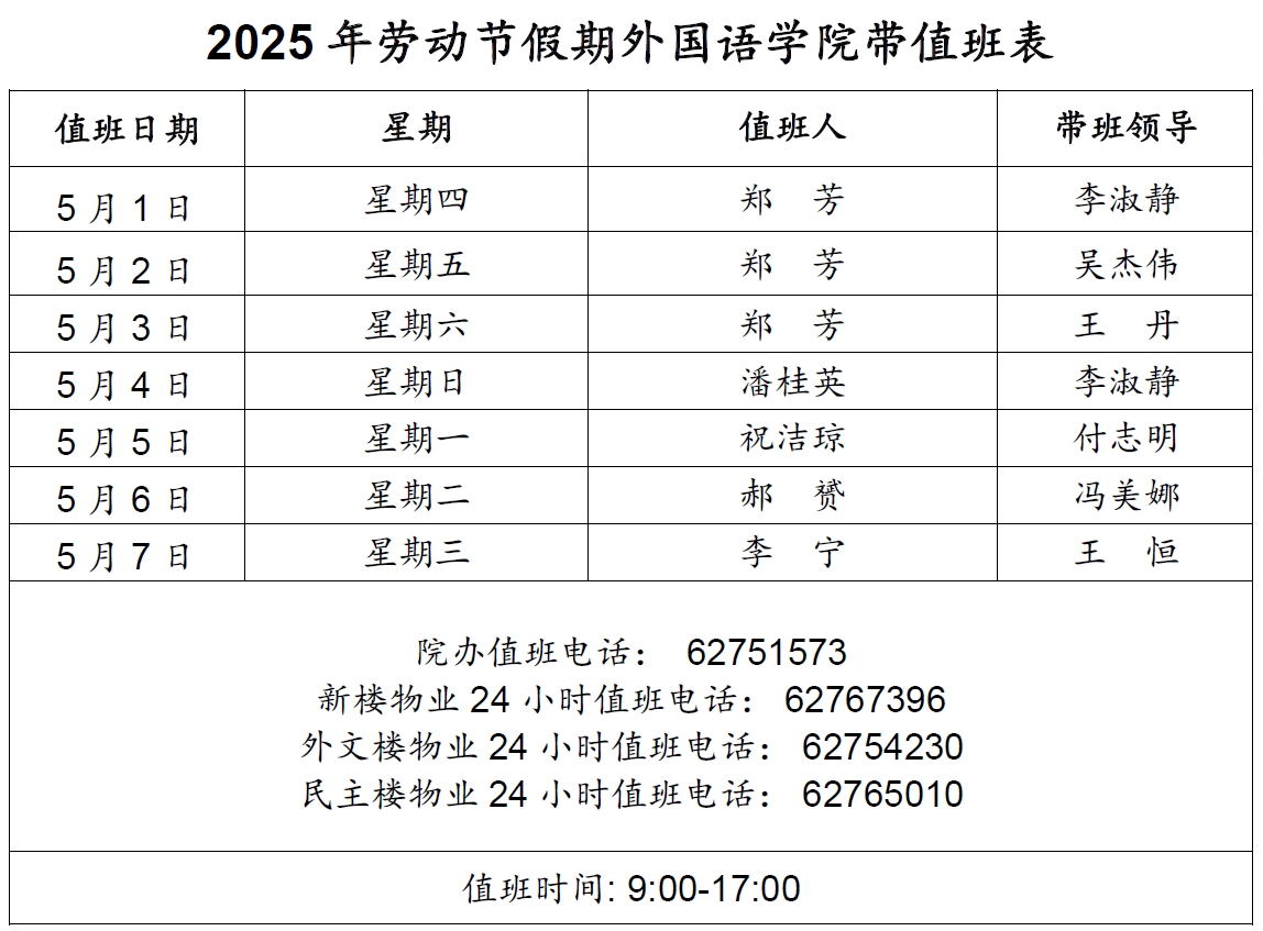 2025年劳动节假期开云官方网址带值班表
