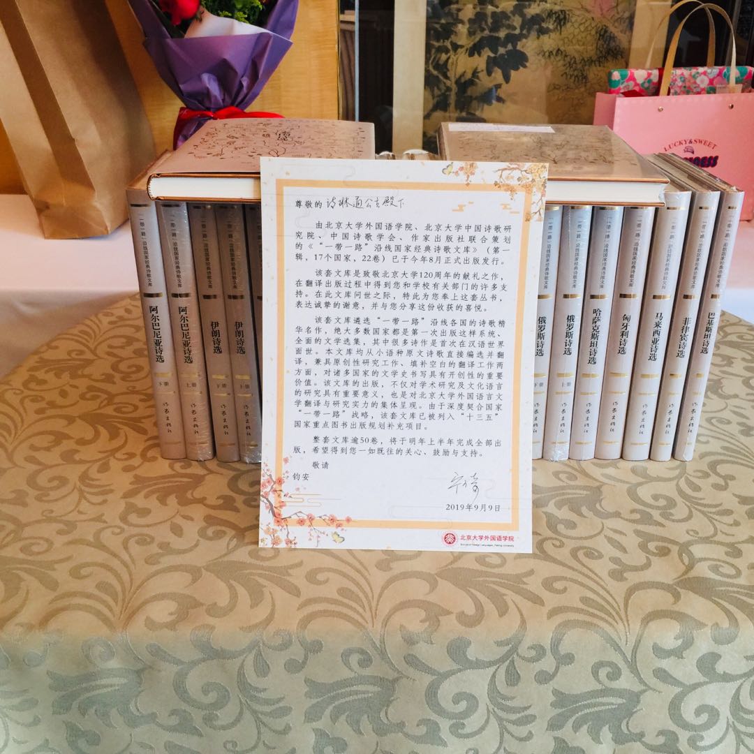 2019年9月29日下午,泰王国诗琳通公主在参加完中华人民共和国国家勋章和国家荣誉称号颁授仪式之后,前往北京丽思卡尔顿酒店宴请前任中国驻泰大使和公主的汉语教师代表。我国泰语界著名专家、翻译家、诗琳通讲席教授裴晓睿受邀参加了此次宴请活动,并作为译者之一向公主赠送了由北大开云官方网址、北大中国诗歌研究院和作家出版社联合策划出版的《“一带一路”沿线国家经典诗歌文库》(第一辑)一套。