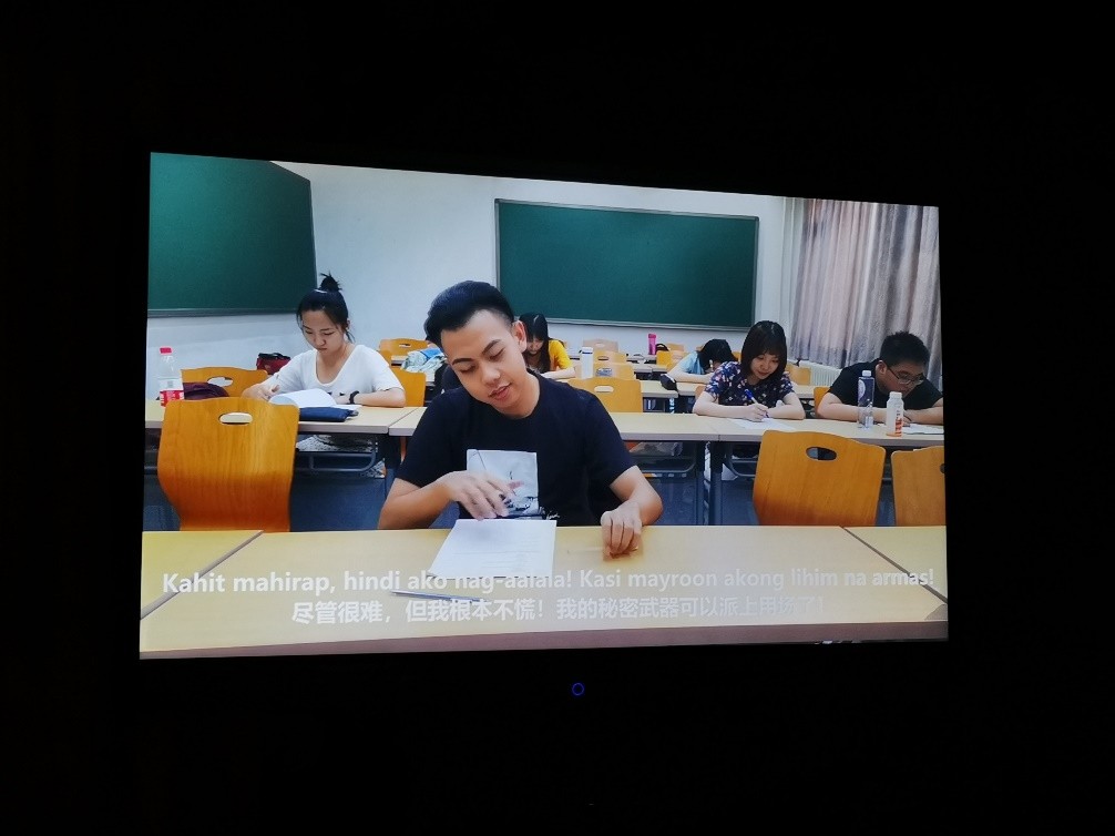 活动的第一个环节是学生微电影首映式。此次放映的微电影名为《Si Matalino at Si Monitor(聪明人和班长)》,由北京大学菲律宾语专业2017级本科生于2019年暑假拍摄,全程采用菲律宾语配音,并配有中文字幕,这是该作品首次面向观众放映。电影中的故事改编自菲律宾民间故事《Si Pusong at ang lumuluksong palaka》,讲述了聪明人通过智慧欺骗贪婪班长并最终取代其位置的故事,表达了对贪婪统治者的抨击和对机智勇敢人物的颂扬。