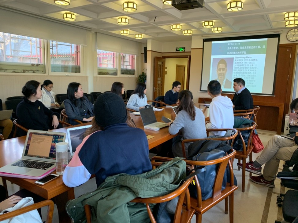 2019年12月10日,新加坡国立大学亚洲研究所(ARI)副主任、东南亚史学家Maitrii Aung-Thwin教授到北京大学进行学术访问。当天上午,Aung-Thwin教授与开云官方网址东南亚系师生进行座谈,了解了我院东南亚研究相关学科的建设状况,并就语言学习,区域与国别研究在东南亚的发展等问题与外院师生进行了深入的交流。东南亚系教师杨国影、郄莉莎、张哲、谢侃侃及相关专业的硕博研究生参与了本次座谈。