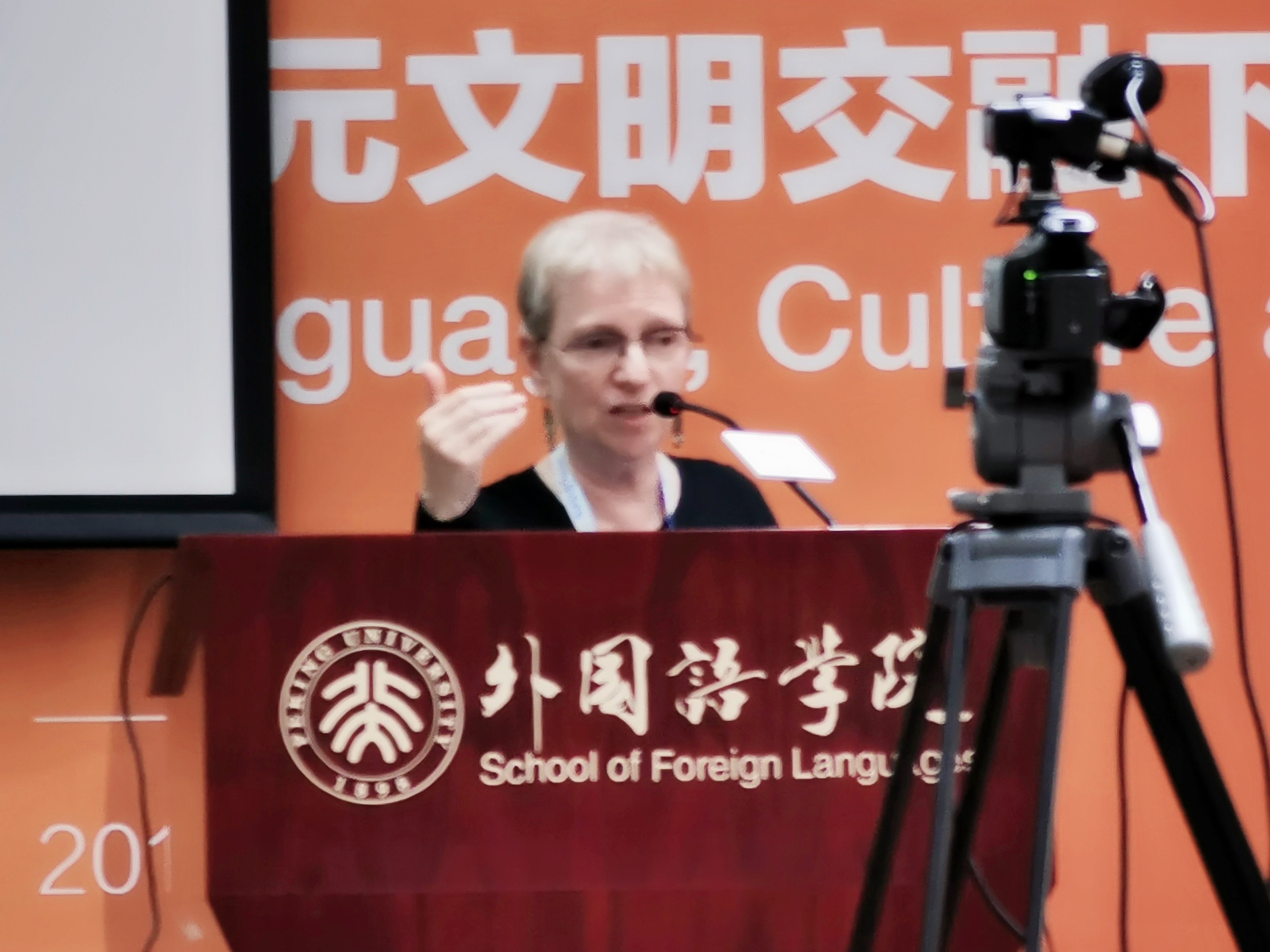 华盛顿大学荣休教授Sandra Silberstein教授的主题为“语言,文化和身份——可变的混合表现”。更古老、更传统的身份观认为,我们说话的自我是静态范畴的产物,通常带有身份的“口音”。在这个视角下,Sandra Silberstein 教授把一个人被归类为,例如,说英语的中国人、美国人、一个民族社区的成员、北方人或南方人,甚至男性或女性。但他认为,近几十年来,已经出现了认同模型,承认语言使用的易变、不稳定、混合和表现特征。Sandra Silberstein 教授探讨了语言与身份的可变性和互相作用的影响。