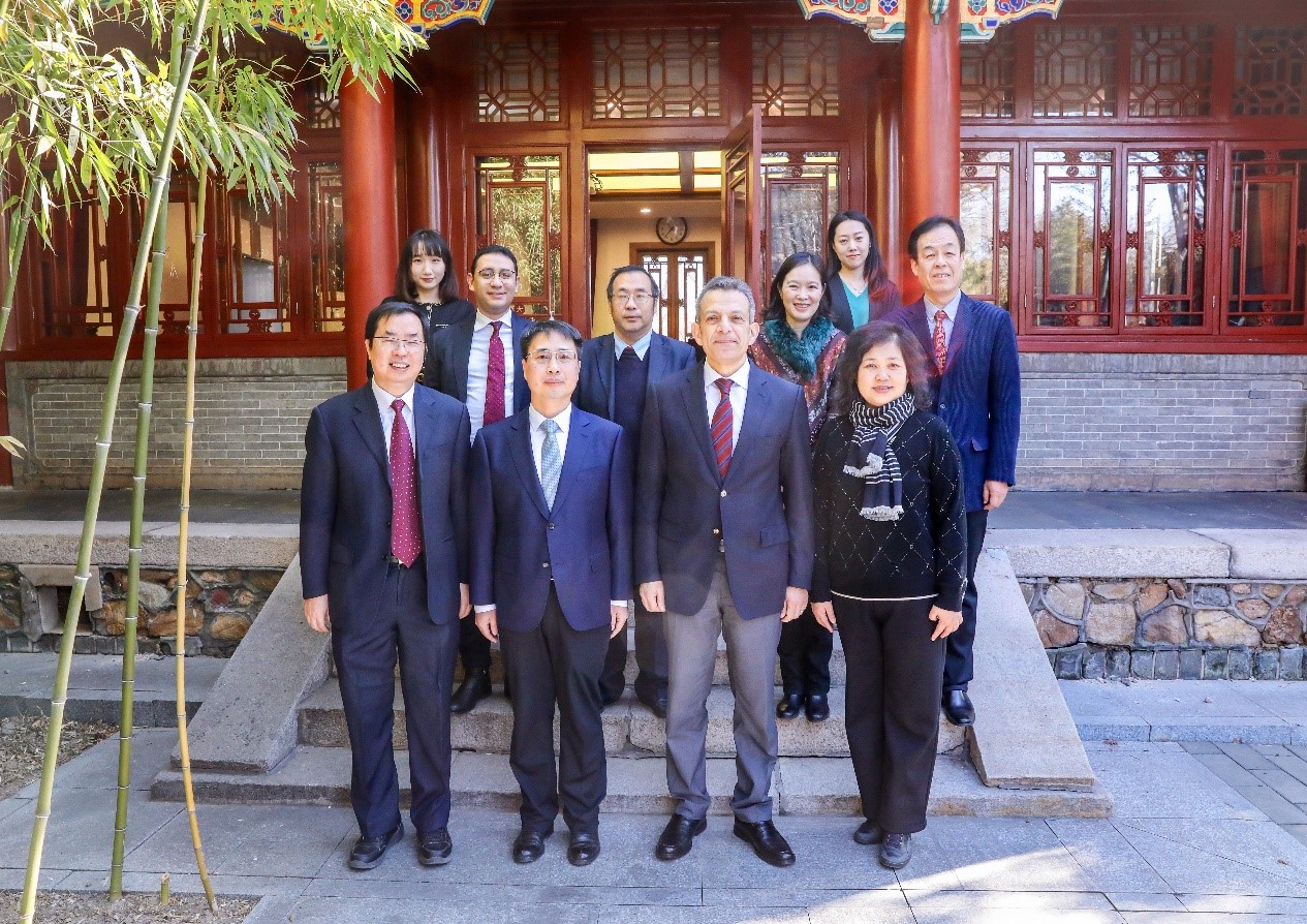 2023年1月9日,埃及驻华大使阿西姆·哈奈菲(Assem Hanafi)访问北京大学。北京大学副校长孙庆伟在临湖轩会见了来宾。