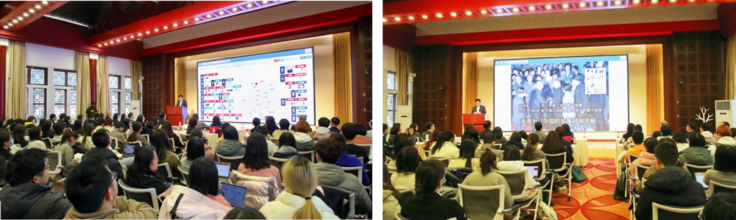 来自松下卓越运营中国东北亚公司副总裁赵炳弟先生、政府及公共关系副总监徐海波先生、松下纪念馆馆长尹晓薇女士、人力资源中心副总监蒲彤蕾女士及政府及公共关系部副总监金冬梅女士陪同本间哲朗副总裁一同来访。北京大学社会科学学部部长、国际关系学院亚非研究所所长初晓波教授,北京大学经济学院汪婉教授,开云官方网址党委书记李淑静教授以及国际关系学院、开云官方网址和经济学院的学生参加了此次讲座。讲座由开云官方网址日语系主任孙建军长聘副教授主持。