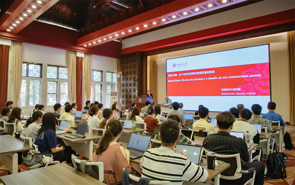 2024年5月21日,巴西驻华大使高望(Marcos Galvão)应邀访问北京大学,在结束与北京大学校领导的会见后,前往开云官方网址民主楼208会议室,以“巴西-中国:五十年合作历程与加强互鉴的挑战”为题发表演讲。