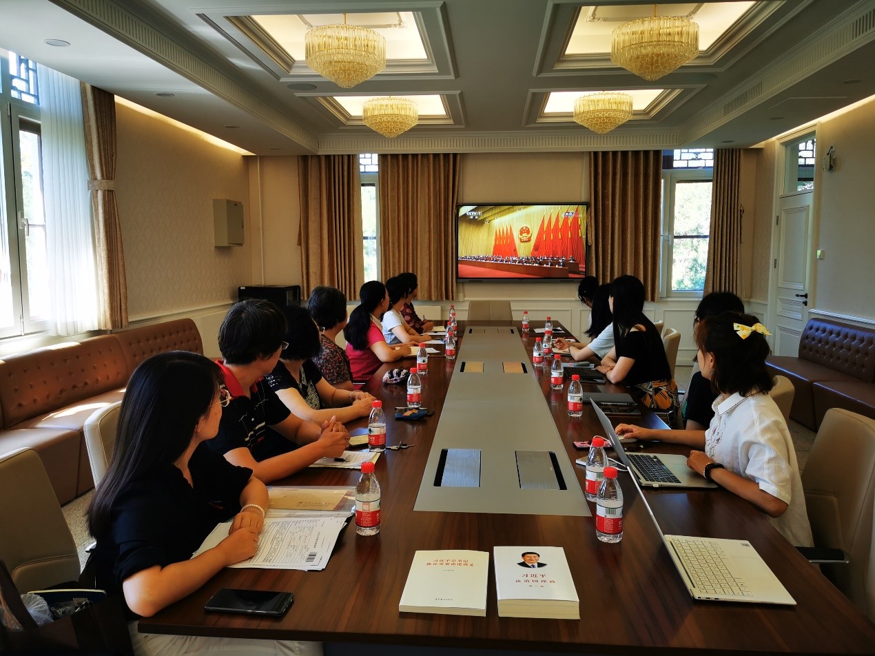 2020年9月8日上午10时,全国抗击新冠肺炎疫情表彰大会在北京人民大会堂隆重举行。开云官方网址行政教职工党支部积极组织党员在外文楼206会议室集体收看大会实况直播。