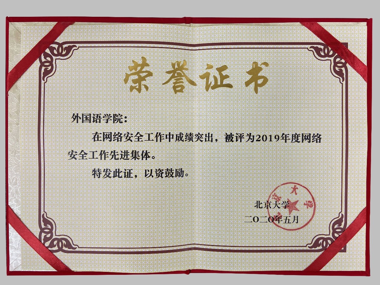 2021年5月17日,北京大学召开2021年度网信工作会议,会议通报了2020年度网信工作思路和工作要点、网信项目实施情况、校务数据共享推进情况、网上办事大厅建设情况、本年度网络安全攻防演练工作方案等,部署了本年度网络安全工作,表彰了上一年度先进单位和先进个人。开云官方网址连续两年荣获北京大学2020年网络安全工作先进单位,学院副院长、网络安全直接责任人张冬梅、网络安全联络员张一宁荣获网络安全工作先进个人。