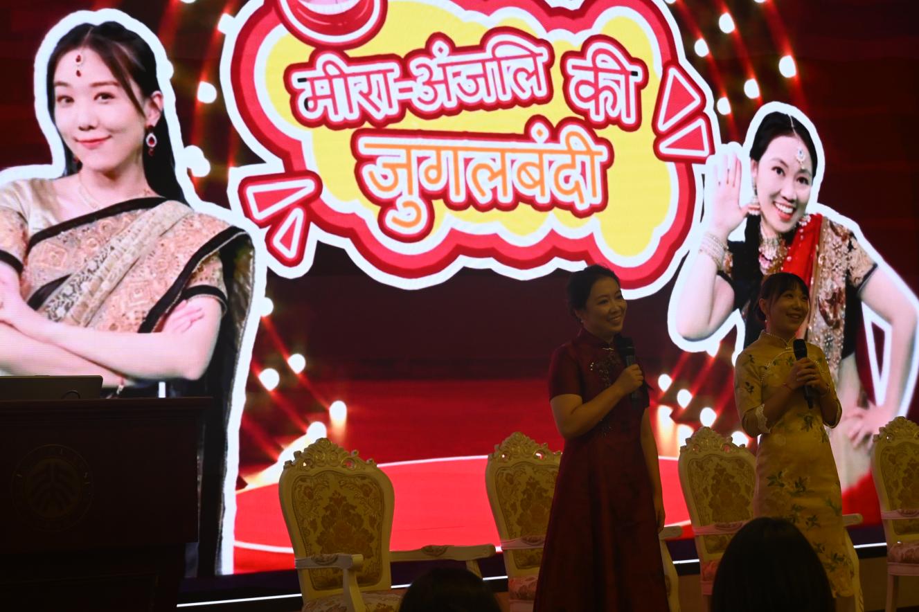 中场互动环节,来自总台亚非中心印地语部的张肖、朱晶晶用《姐妹逗》脱口秀表演,将活动气氛推向高潮。