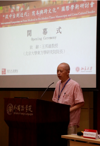 王邦维教授强调了中国书写系统以及写本文化的源远流长,尤其是敦煌写本的发现,其丰富与多元及其独特的历史性,让世界为之震惊。国内学界近年来在写本方面的研究已经有了长足的进展。由于其形式和作为载体的独特性,写本能为我们提供很多有关字体纸张、认知体系与知识的流传、学术史以及社会文化史等多方面的信息,是研究古代社会生活以及智识世界的重要通道。王邦维教授还介绍了北京大学东方文学研究中心近年来推行的“东方大文学”研究的情况,希望通过此次会议大家能够充分交流意见,互相学习。