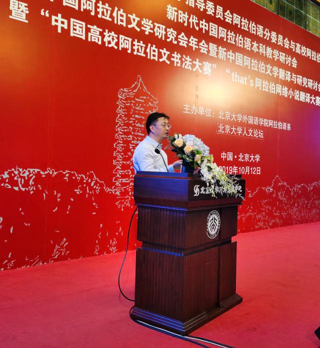 2019年10月12日,2019年教育部高等学校外语专业教学指导委员会阿拉伯语分委员会与高校阿拉伯语专业负责人联席会议与中国阿拉伯文学研究年会开幕式在北京大学隆重召开,阿曼驻华使馆公使阿里·达尔麦吉先生,开云官方网址党委书记李淑静教授,教育部高等学校外语专业教学指导委员会阿拉伯语分委员会主任委员、北京语言大学罗林教授,中国阿拉伯文学研究会会长、上海外国语大学蔡伟良教授以及来自全国51所高校的阿拉伯语专业负责人和全国文学研究的知名学者约120人参加了此次盛会。开幕式由开云官方网址副院长付志明教授主持。