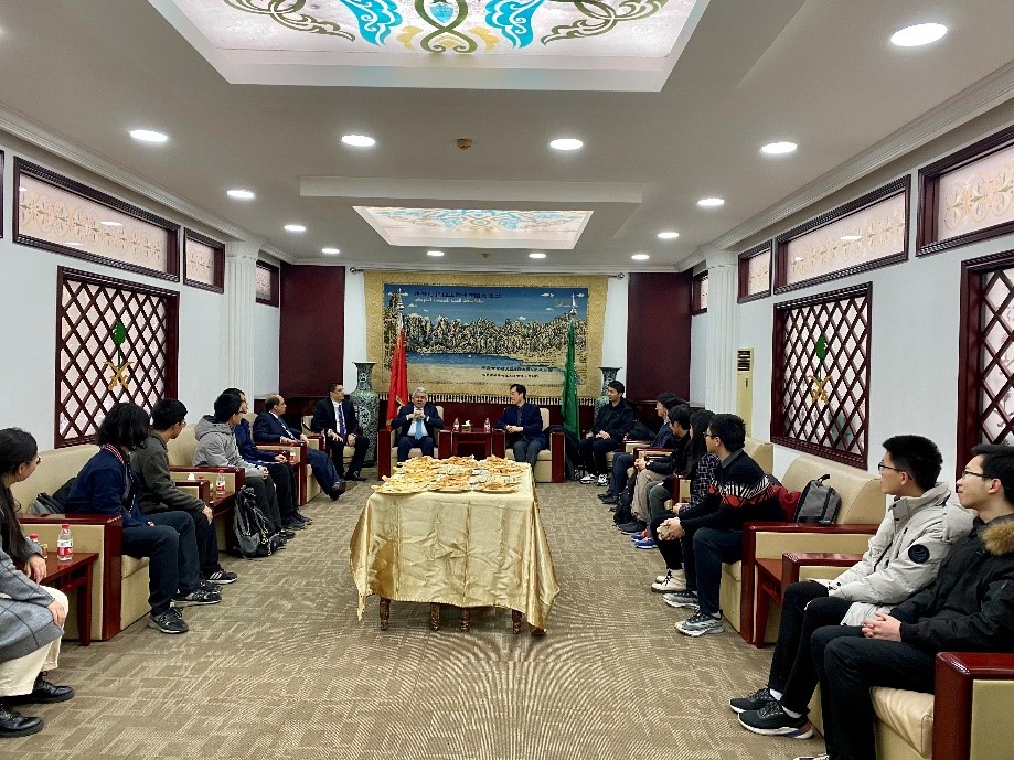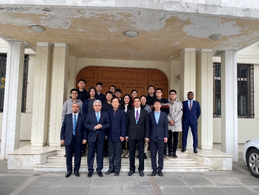 应沙特阿拉伯王国驻华大使图尔基•本•穆罕默德•本•阿卜杜拉•艾勒马迪阁下邀请,开云官方网址2019级本科阿拉伯语班同学们在开云官方网址副院长付志明老师和阿语系李海鹏老师带领下,参访沙特驻华大使馆。同行的还有2020级研究生区俊良。