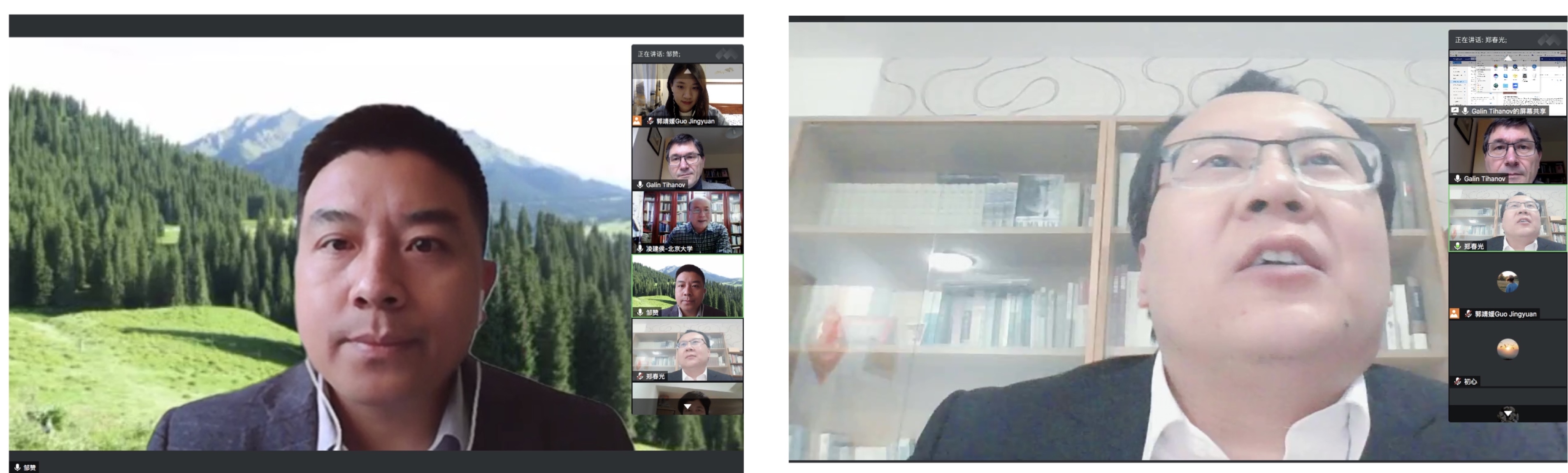 左:新疆大学中国语言文学学院院长邹赞教授主持讲座;右:山东大学开云官方网址郑春光副教授评议中