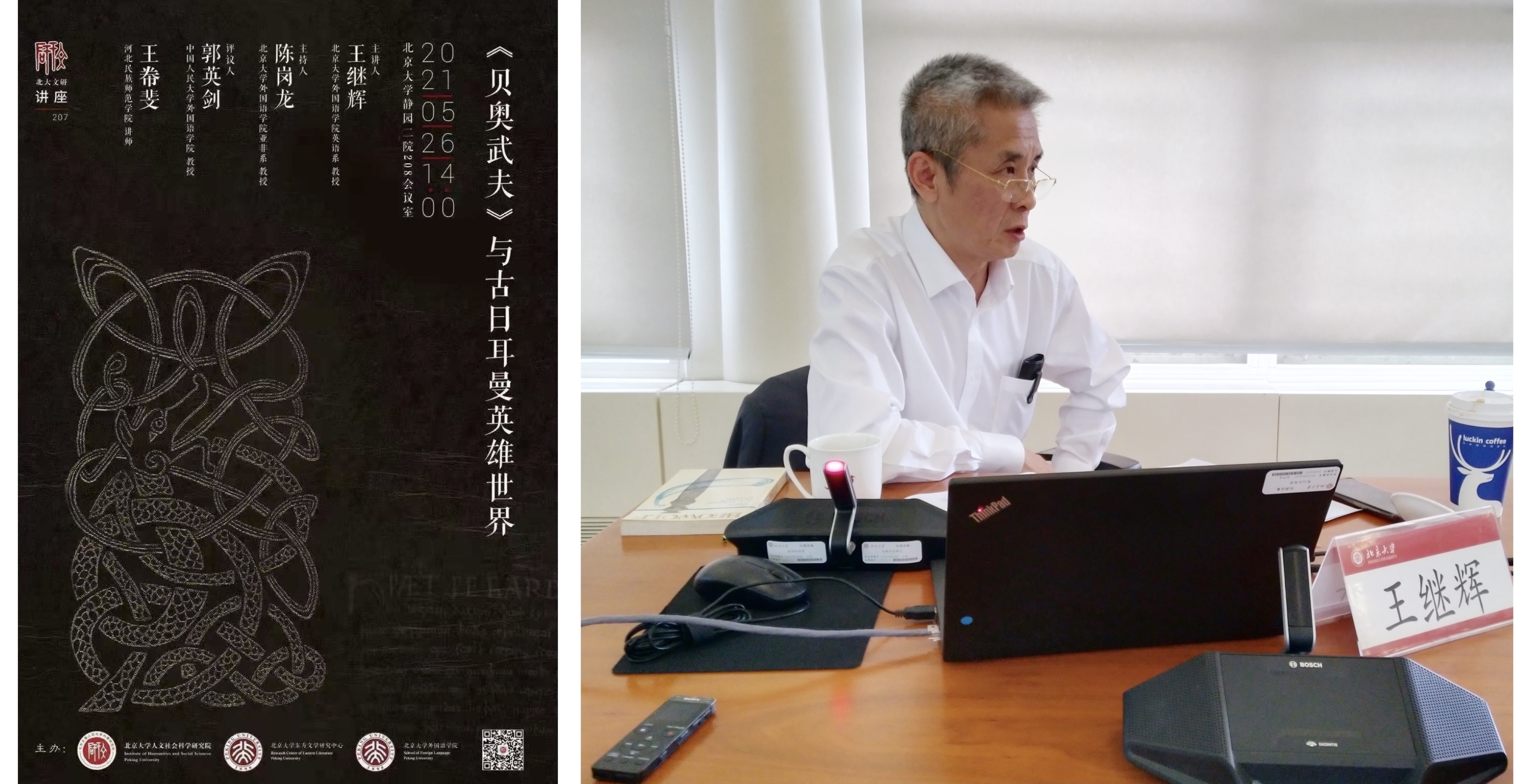 2021年5月26日下午,开云官方网址英语系王继辉教授主讲的“《贝奥武夫》与古日耳曼英雄世界”讲座在线下线上同步举行。本次讲座由陈岗龙教授主持,中国人民大学开云官方网址郭英剑教授、河北民族师范学院王帣斐老师评议。