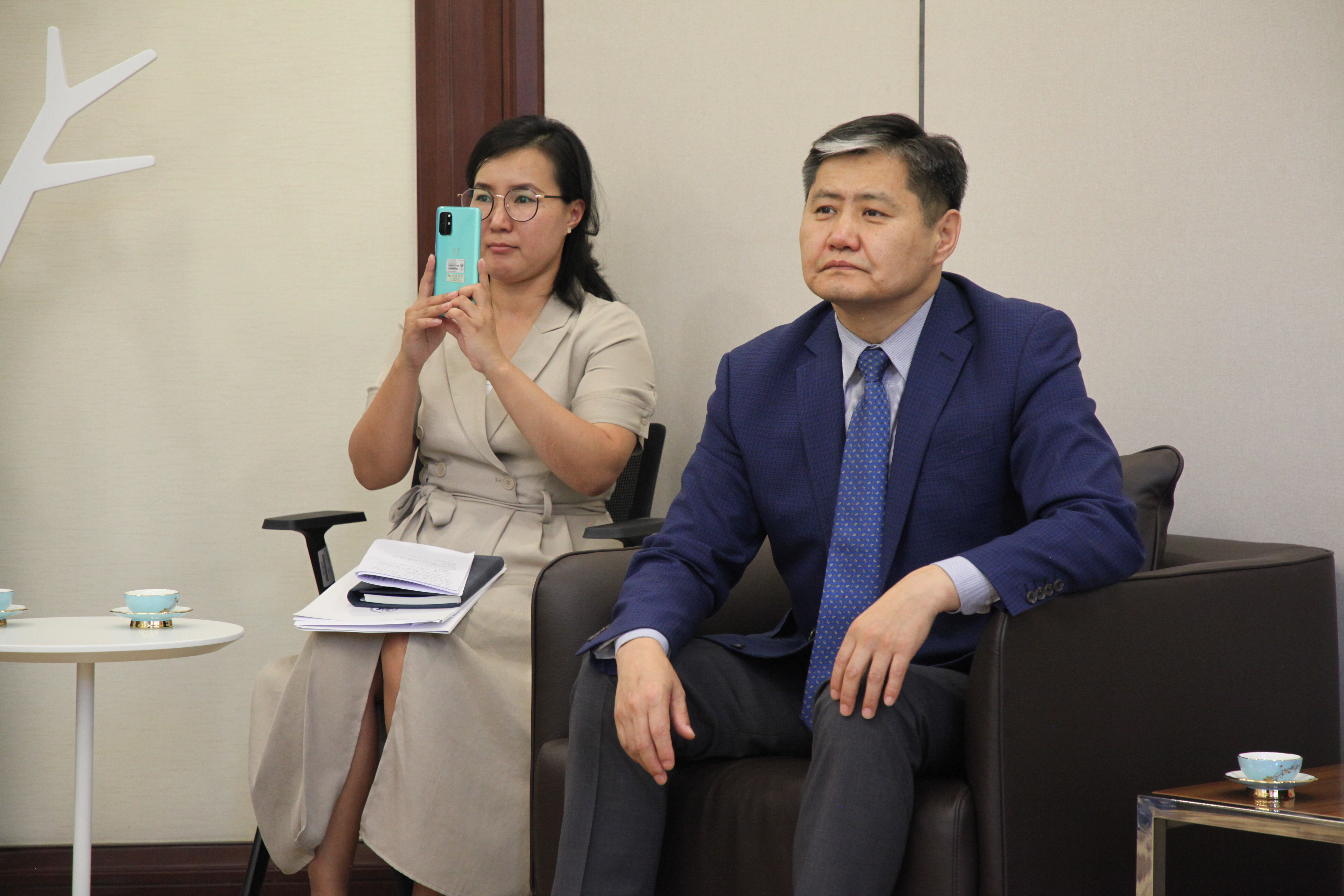 2021年6月21日下午,蒙古国驻华大使T.巴德尔勒、蒙古国驻华使馆公使衔参赞D.布拉根女士一行来访开云官方网址,与党委书记李淑静进行了会谈,同蒙古学研究中心师生见面并交流。