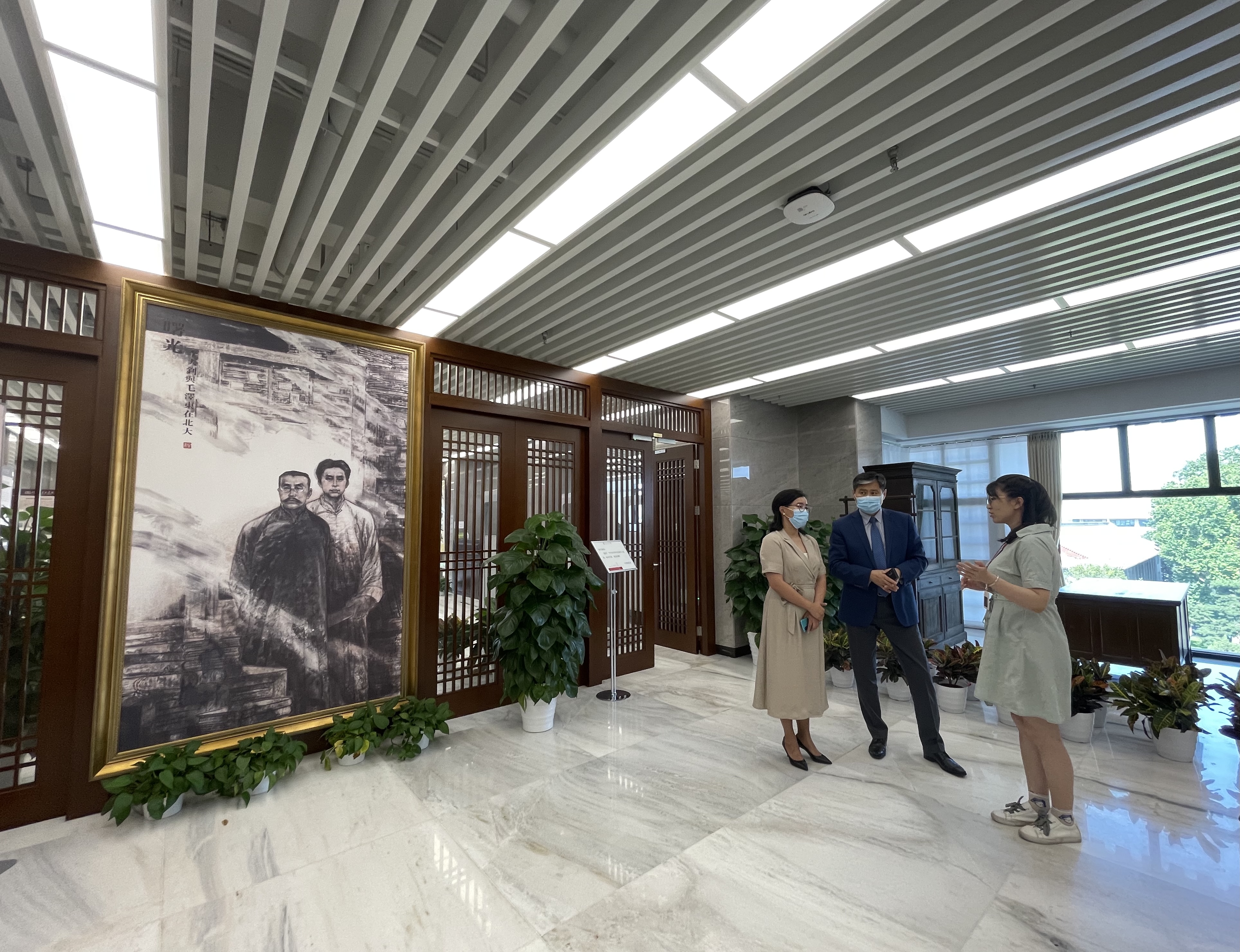 会见后,巴德尔勒大使一行参观了北京大学蒙古学研究中心,并前往北京大学图书馆大钊阅览室,仔细参观了“李大钊与北京大学”、“李大钊与北京大学图书馆”、“李大钊与新文化运动”、“李大钊与中国共产党”等展台。