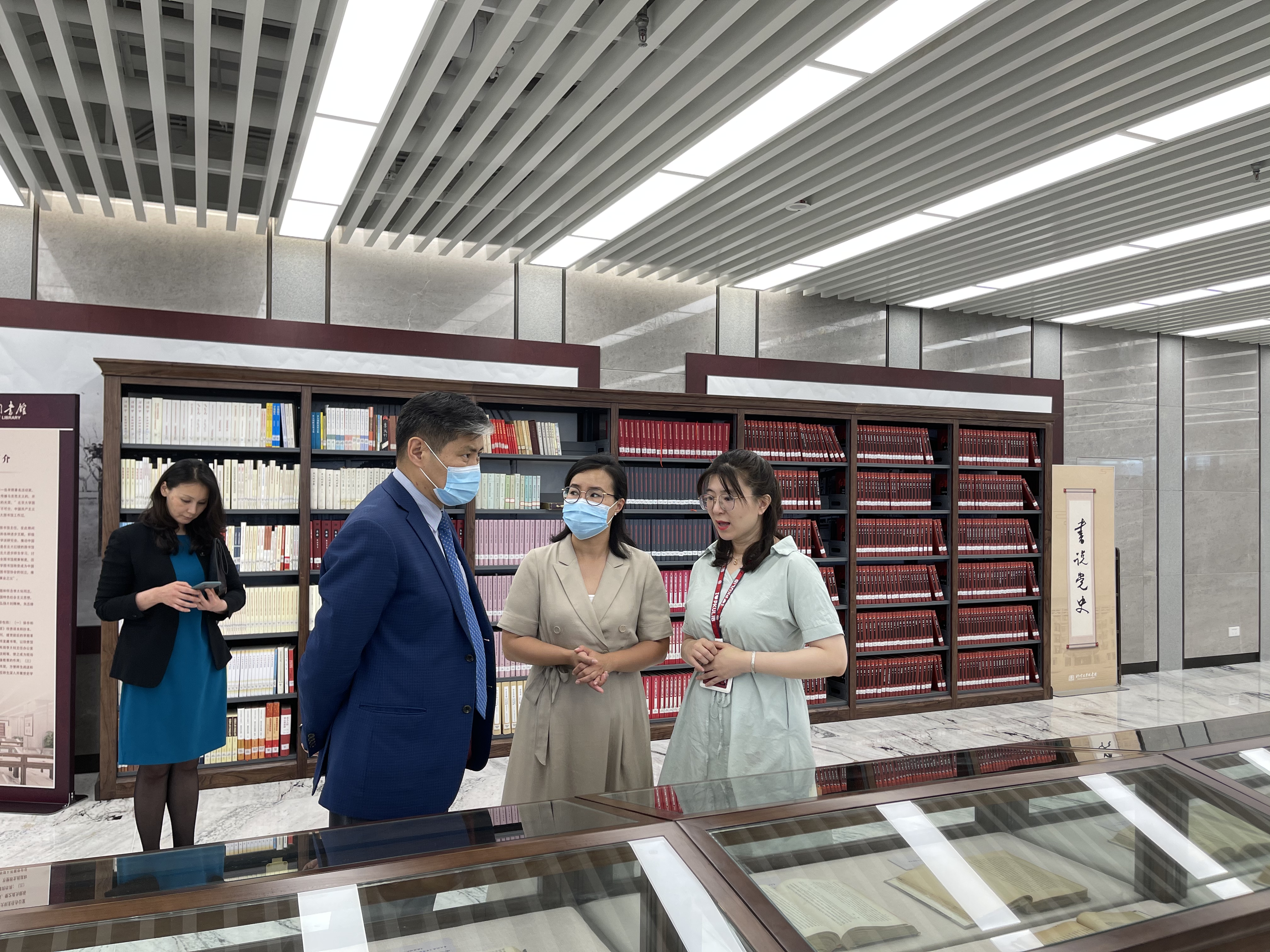 巴德尔勒大使一行参观北大图书馆大钊阅览室