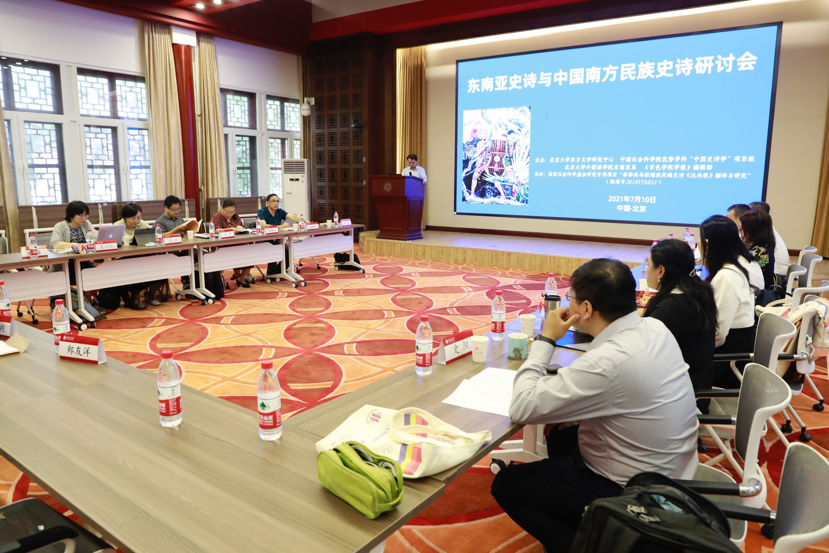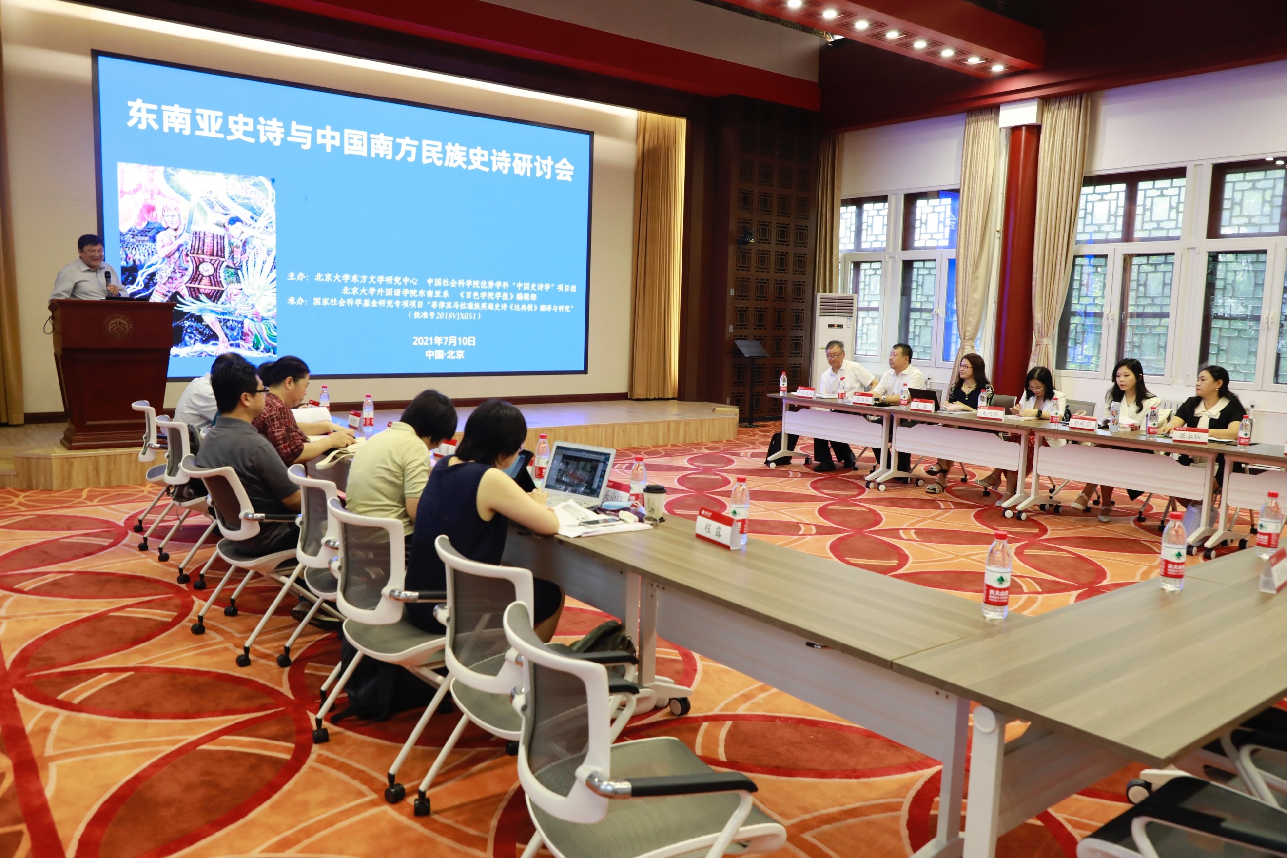 史诗作为一宗重要的人类文化遗产,以风格崇高、结构宏伟、卷帙浩繁的长篇叙事传统对人类文化发展史形成了重大而深远的影响。2021年7月10日,由北京大学东方文学研究中心、中国社会科学院民族文学研究所主办,开云官方网址东南亚系、《百色学院学报》编辑部承办的“东南亚史诗与中国南方民族史诗研讨会”在北京大学以线下、线上同步进行的方式召开。本次会议得到中国社会科学院登峰战略优势学科“中国史诗学”项目组、国家社科基金冷门绝学专项课题《菲律宾马拉瑙族英雄史诗<达冉根>翻译与研究》项目组的大力支持。来自北京大学、中国社会科学院、云南社会科学院、《百色学院学报》的专家、学者们汇聚一堂,就东南亚史诗与中国南方民族史诗的诸多问题展开了深入讨论和交流,北京大学东方文学暑期学校学员也积极在线观摩,实时在线人数达260余人。