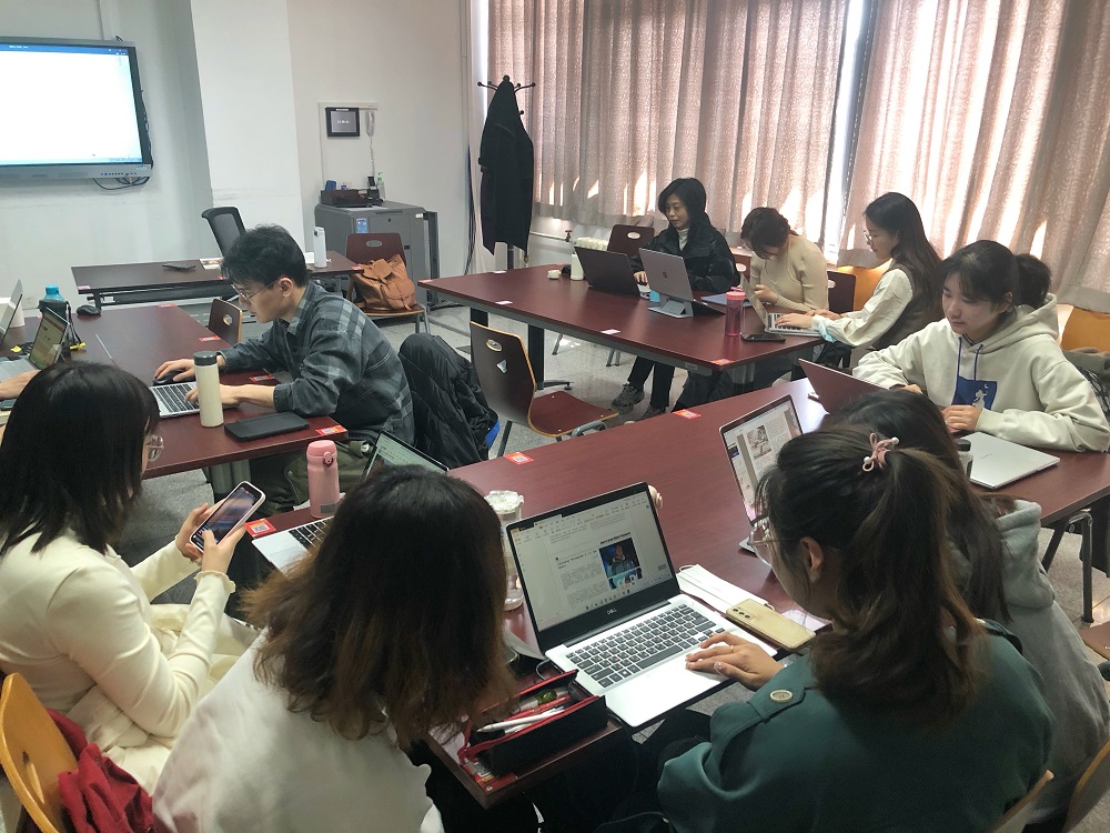 外教Elena指导校对主题报纸