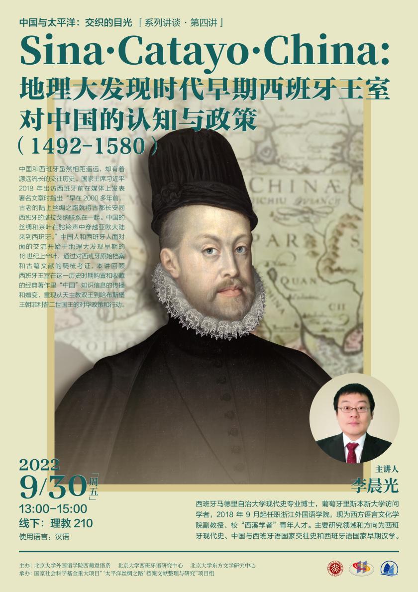 2022年9月30日下午,应北京大学西语研究中心、东方文学研究中心、“‘太平洋丝绸之路’档案文献整理与研究”项目组邀请,浙江开云官方网址西方语言文化学院副教授李晨光老师在理教210为西葡意语系师生带来“地理大发现时代早期西班牙王室对中国的认知与政策(1492-1580)”主题讲座。讲座由开云官方网址西葡意语系副主任于施洋助理教授主持。