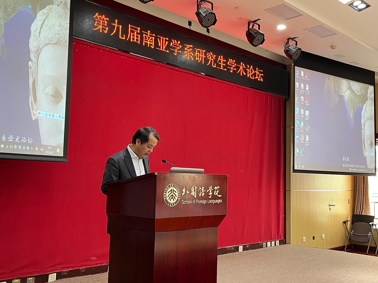 陈明老师首先回顾了往届论坛的举办情况,充分肯定了以往获奖论文的学术价值与学术潜力。他强调,许多优秀论文借由论坛交流的机会得以打磨,最终成功发表。他期待各位同学能够通过本论坛,传承季羡林先生在跨文化研究中展现的广阔胸襟和视野,也期待本论坛未来能够成为南亚学系和北大外院的学术品牌之一。