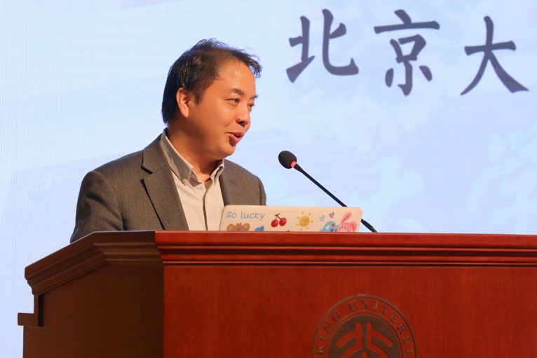 在论坛开幕式上,陈明院长围绕三个关键词致开幕辞。第一个关键词是“感恩”。陈老师首先代表学院对长期支持论坛工作的北京大学研究生院、认真参与审稿的各位老师、筹备论坛的师生团队以及积极参与论坛的同学致以诚挚的谢意。第二个关键词是“守正”。陈明老师指出,身处新时期百年未有之大变局,面对人工智能的冲击和新技术的挑战,希望外语学科研究生能坚守家国情怀,守住学术报国、取法乎上、脚踏实地、持之以恒、勇往直前的精神品质。第三个关键词是“创新”。陈明老师指出,研究生论坛是思想交汇、观念碰撞、友谊联络的大平台,同学们应该以“外语为基础”,不局限于某种外国语言或文学,兼具其他学科的素养,在跨语言、跨文化、跨区域、长时段的语境中,不断训练和提升自己的研究能力,培养自己成为国际化的有用之才。