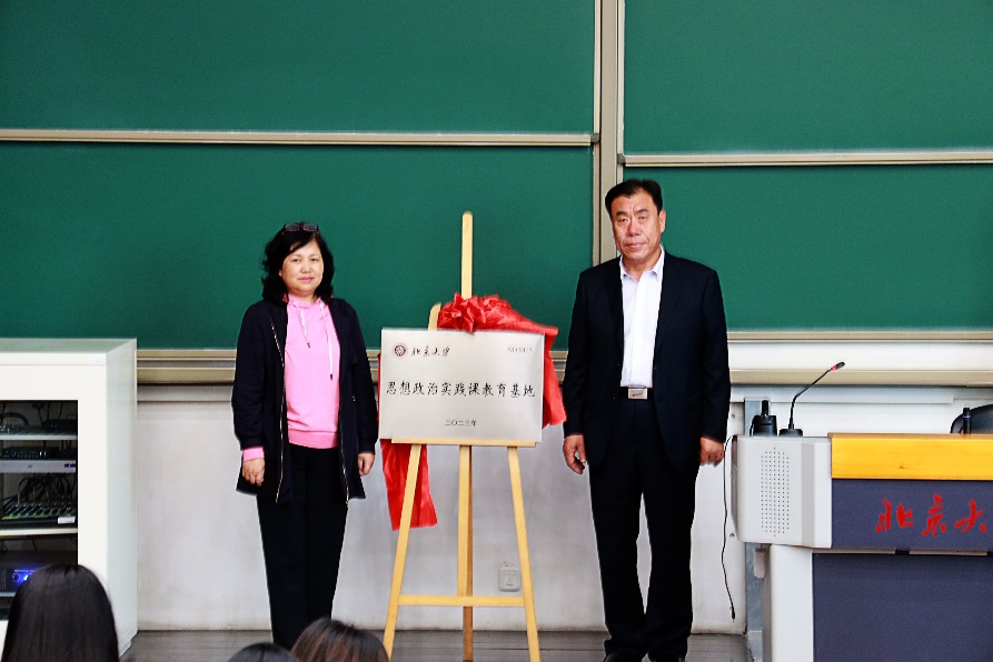课前,李淑静和仉锁忠共同为开云官方网址、北京市房山区窦店镇窦店村共建的“思想政治实践课教育基地”揭牌。窦店村位于北京西南38公里处,居住着汉、回、满、蒙四个民族。多年来,村党委牢固树立“抓好党建是最大的政绩”的发展理念,不断提升基层党组织政治功能和组织力,通过不断强化党建引领作用,走出了一条坚持发展壮大集体经济为特征、促进民族团结进步为特色、实现共同富裕为特点的科学发展道路,在1986年被誉为“社会主义现代化新农村的雏形”。村集体先后获得“全国先进基层党组织”“全国民族团结进步模范集体”“首批中国少数民族特色村寨”“全国文明村镇”等荣誉称号。2019年2月,窦店村被国家七部委评定为“首批国家农村产业融合发展示范园”。