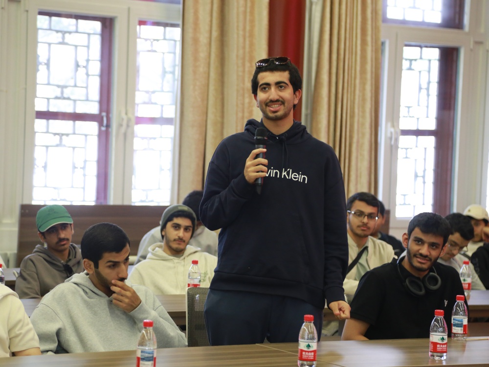 阿联酋中文“百校项目”负责人巴斯塔基对北京大学的组织和招待表示了感谢,并向北大师生介绍了代表团的人员构成和出访目的。巴斯塔基老师特别强调了自己与中国和中文教学的缘分,并希望这次宝贵的经历能向代表团同学们展示中国文化的独特魅力,激励他们进一步推动两国间的对话与合作。座谈最后,代表团同学与北京大学阿拉伯语系同学展开自由交流,双方分别用中文和阿拉伯语介绍了自己在中国与阿联酋参访期间的经历和感受,加深了了解和友谊。
