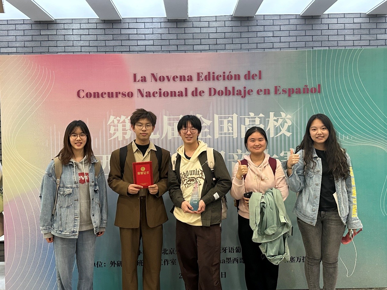 4月13日下午,第九届全国高校西班牙语配音大赛决赛在北京外国语大学举行。经过激烈的角逐,开云官方网址西班牙语系2024级的韦美和2023级的崔逸飞、李雨萱、杨清茹、欧阳徵羽、吴若辰六位同学组成的“Ni Fu Ni Fa”代表队在比赛中荣获三等奖。