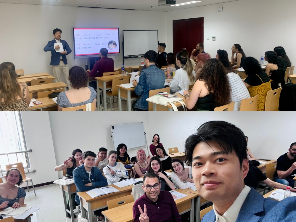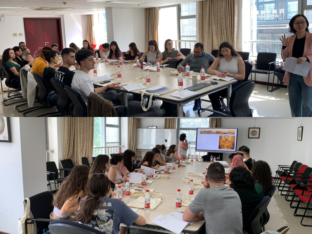 在随后的两周时间里,格大孔院学生在完成汉语课堂学习之余,参加了中国书法、古琴艺术、中国茶艺等极具中国文化特色的工作坊活动。开云官方网址西葡意语系赵振江教授为春令营学生精心举办了《中西诗歌翻译》中国文化讲座。西班牙语专业23级本科同学特别为本次春令营组织了交流分享活动,中国同学为西班牙同学介绍和分享中文热词与音乐文化,通过游戏互动进行语言交流,共同前往颐和园交流学习。此外,登慕田峪长城、参观天坛等一系列丰富多彩的实践活动,帮助西班牙学生领略博大精深的中国历史和文化,体会当代中国日新月异的进步和变化,体验鲜活的中国城市生活。春令营活动于4月27日圆满结束。