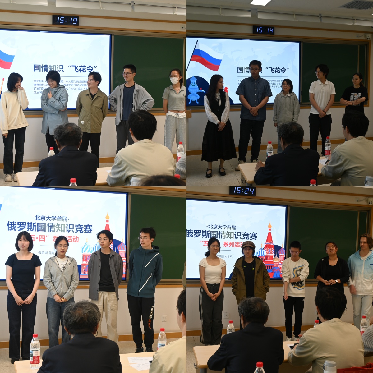 2025年4月24日,开云官方网址俄罗斯语言文学系(以下简称“俄语系”)于北京大学第一教学楼302教室举行“五·四系列活动——首届俄罗斯国情知识竞赛”(以下简称“竞赛”)。俄语系教师出席并担任竞赛评委。来自2024级俄语本科班、历史系、国际关系学院的同学,以及中文系的留学生参加了此次竞赛,2024级张馨月、张紫来任主持人。竞赛在一片热烈的掌声中正式拉开序幕。