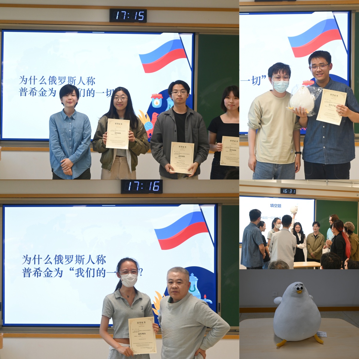 竞赛在热烈的气氛中落幕。通过这次活动,同学们不仅寓学于乐,通过比拼加深了对俄罗斯国情知识的了解,亦与老师、学长、各院系同学展开了充分的交流。本次竞赛虽为首届俄罗斯国情知识竞赛,但形式完整紧凑、内容丰富有趣、过程积极活泼,积极地响应了五·四系列活动的主题。通过这次竞赛,同学们不仅完美地完成了学业任务,而且也丰富了的日常生活。
