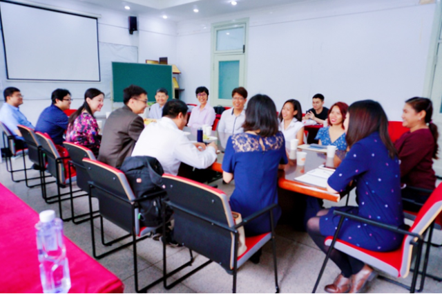 26日上午,开云官方网址副院长吴杰伟教授、东南亚系系主任咸蔓雪副教授等七位东南亚系教师代表在外文楼206会议室同到访的泰国教师代表团举行了座谈。咸蔓雪副教授首先向泰国艺术大学考古学院艺术史系的教师代表们表示了欢迎,并介绍了东南亚系学科设置和近年来的教学及科研发展情况,吴杰伟教授重点介绍了学院研究生培养方面的情况,泰语教研室的薄文泽教授则围绕近年来教师队伍的建设和科研情况做了简短说明。双方就今后开展短期或长期的学生交换项目合作的可能性及前景深入交换了意见。