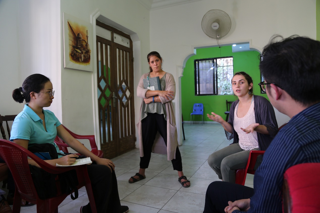 在黎巴嫩,代表团访问了贝鲁特美国大学的公共政策与国际事务学院,院长纳赛尔·亚辛接见并做了相关介绍。他首先回顾了叙利亚危机前黎巴嫩接收土耳其、巴勒斯坦、伊拉克难民的历史,随后介绍了叙利亚危机后难民问题的新变化,例如,两国在黎巴嫩北部本来就存有大量的季节性劳工,因此很多叙利亚难民都曾在黎巴嫩工作过,拥有当地的社会关系和网络,从而深化了叙利亚难民问题的复杂性。亚辛还展示了不少学院的研究成果和数据资料,比如不同部门的资金缺口比例,其中对食品安全和教育的投入比例较低,但由于黎政府部门的腐败,援助款项运用不及时与不到位,导致难民问题进一步恶化。