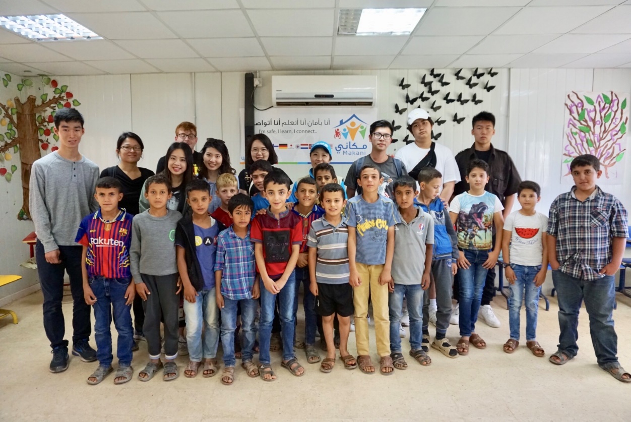 在联合国儿基会项目Makani中心与孩子们合影