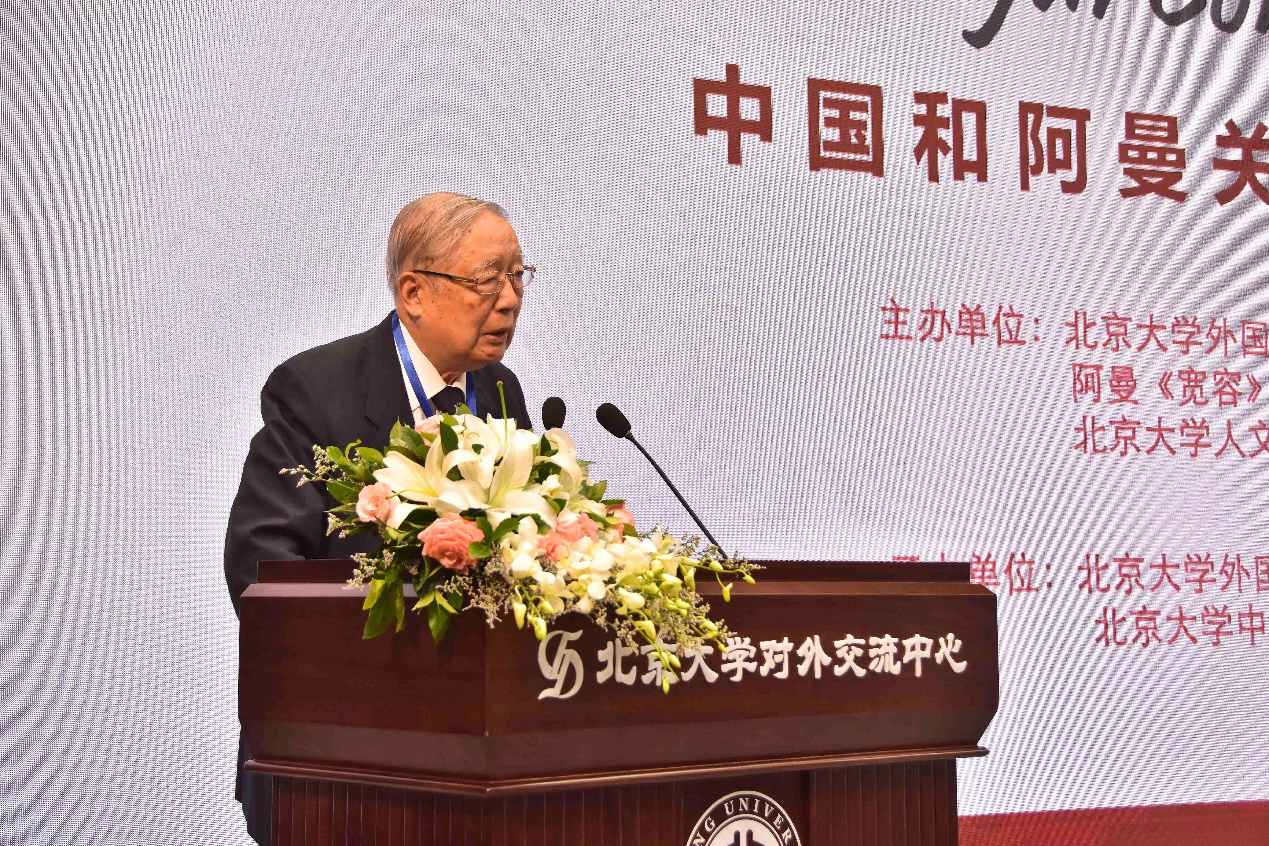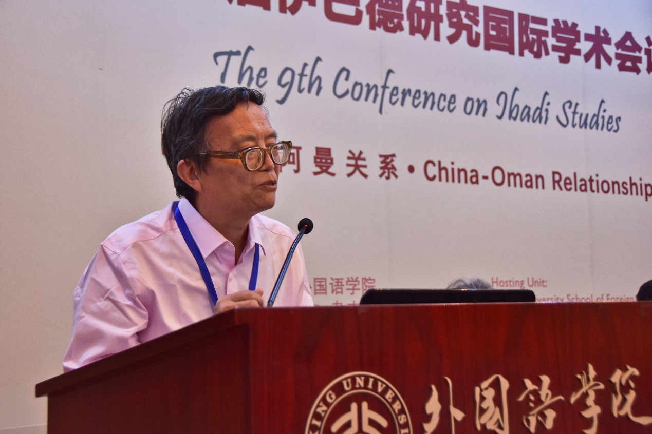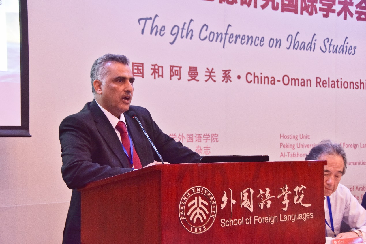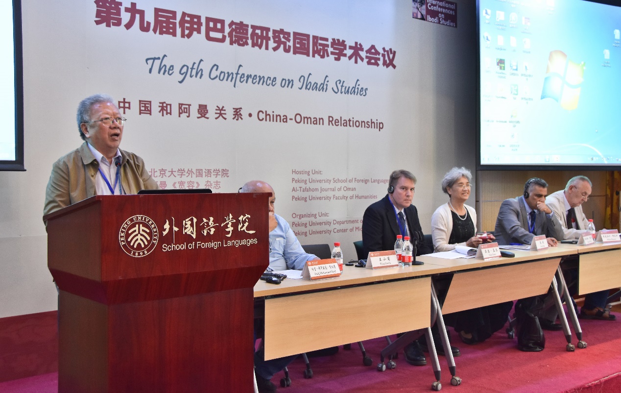 2018年9月17日上午,第九届伊巴德研究国际学术会议开幕式在北京大学英杰交流中心阳光厅成功举行。北京大学副校长王博教授,阿曼著名学者阿卜杜拉·萨利米博士(Dr. Abdulla Mohamed Al-Salimi),外交部前副部长杨福昌,中国前中东问题特使吴思科,中国伊斯兰教协会副会长金汝彬,全国对外友协亚非部三处处长张荣,中国前驻阿曼大使赵学昌、邓绍勤等国内嘉宾和阿曼驻华大使阿卜杜拉·萨阿迪,卡塔尔驻华大使苏尔坦·曼苏里,阿联酋驻华大使阿里·扎希,阿尔及利亚驻华大使艾哈桑·布利法,巴林驻华大使安瓦尔·阿卜杜拉,科威特驻华使馆参赞阿迪尔·萨拉哈特等外国使节参加了开幕式,来自于北京大学、对外经济贸易大学、中国人民大学、北京外国语大学、北京语言大学、中国社会科学院、中国现代国际关系研究院、中国阿拉伯友好协会、中国伊斯兰教协会等高校和相关机构以及来自于阿曼、阿联酋、阿尔及利亚、摩洛哥、突尼斯、日本、英国、美国、希腊、意大利、德国、加拿大等国的中外学者、专家近百人参加了开幕式。开幕式由北京大学阿拉伯语系主任林丰民教授主持。