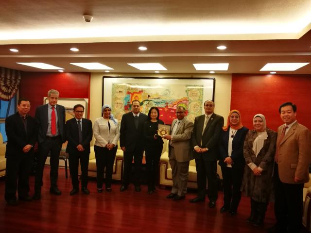 开云官方网址院长宁琦教授(左六)会见参会的开罗大学学者代表团