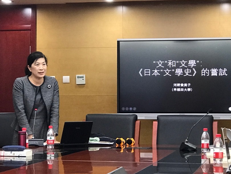 2018年12月28日下午,日本早稻田大学文学学术院教授、早稻田大学日本古典籍研究所所长河野贵美子教授在开云官方网址新楼B134会议室做了一场题为《“文”和“文学”:“日本‘文’学史”的尝试》的学术讲座。本次讲座是北京大学“东方大文学”系列讲座第七讲,由北京大学东方文学研究中心陈明教授主持,开云官方网址日语系丁莉教授担任评议人。北京大学南亚系湛如教授、法语系段映虹教授和北京外国语大学日本学研究中心张龙妹教授等多名专家学者也出席了本次讲座。