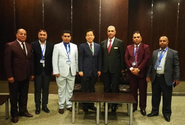 付志明(左四)与伊拉克巴比伦大学教育学院院长穆罕默德•沙齐尔博士(右三)