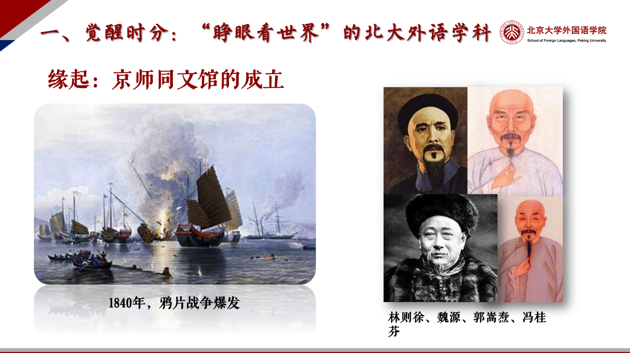 陈明院长回顾北大外语学科的起源与发展历程。北大外语学科可追溯至1862年成立的京师同文馆,历经京师大学堂时期的发展,逐步形成多语种、多学科的办学格局。外语学科自诞生之初就与国家命运紧密相连,承载着中国人“睁眼看世界”的历史使命。