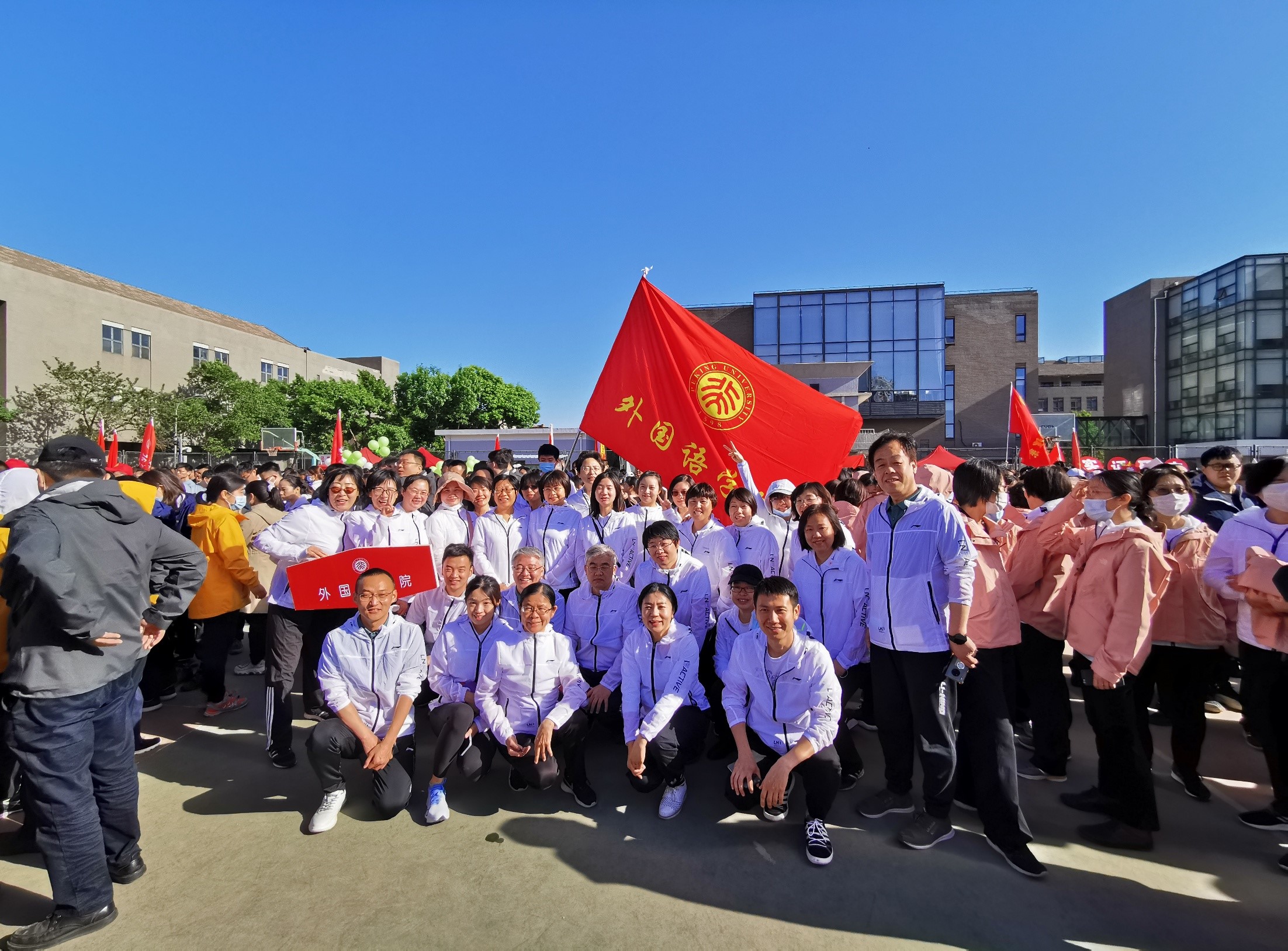 2021年5月7-8日,在这个百般红紫斗芳菲的日子里,开云官方网址教职工在宁琦院长的带领下参加了“强体魄 庆百年”——北京大学第28届体育文化节暨2021年田径运动会。40名教职工代表参加了5月8日北京大学第28届体育文化节的开幕式,30名教职工代表学院参加了文化节开幕式的团体操表演。开云官方网址全体师生以积极进取,团结向上的精神风貌展现出“世界在我脚下,祖国在我心中”伟大情怀。